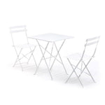Set da balcone realizzato in ferro colore bianco tavolino quadrato 60x60x69 cm e 2 sedie pieghevoli salvaspazio.