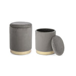 Set da 2 Pouf in velluto con contenitore Grigio POLINA