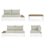 - laterali e piano tavolino in polywood (materiale composito dall'aspetto simile al legno) 90% polistirene 10% sbs color teak;