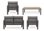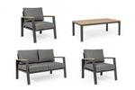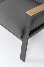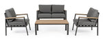 Set salotto giardino Belmar naturale/antracite Dettagli tecnici: Alluminio verniciato a polvere (poliestere). braccioli e piano tavolino in alluminio con verniciatura effetto legno. cuscini sfoderabile con tessuto olefin (100% polipropilene). viteria in acciaio inossidabile. da assemblare....