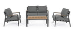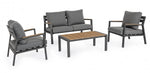 - braccioli e piano tavolino in polywood (materiale composito dall'aspetto simile al legno) 90% polistirene 10% sbs color teak.