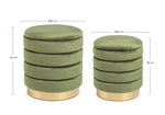Il Set2 Pouf Contenitore Darina Olive è composto da due pouf con struttura in MDF e compensato. Il rivestimento in poliestere effetto velluto conferisce un aspetto elegante e raffinato, adatto ad ogni tipo di ambiente e arredamento.