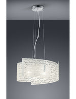 La sospensione SIGNA di Trio Lighting presenta un rosone rotondo e un diffusore formato da 3 vetri bianchi decorarti con firme.