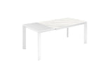 Il top in ceramica marmo bianco conferisce al tavolo un aspetto lussuoso e sofisticato, mentre le gambe in metallo garantiscono stabilità e resistenza. Le allunghe in melaminico permettono di estendere facilmente la lunghezza del tavolo da 140 cm a 200 cm, offrendo spazio aggiuntivo per ospitare più persone.