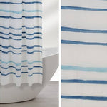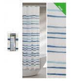Tenda per doccia realizzata in peva, resistente all'acqua e all'umidità, totalmente impermeabile. La fantasia è caratterizzata da strisce acquerellate nelle varie tonalità del blu. Le misure sono le seguenti: larghezza 240 cm ed altezza 200 cm. I ganci per l'installazione e una pratica fascia di chiusura sono inclusi nella confezione.